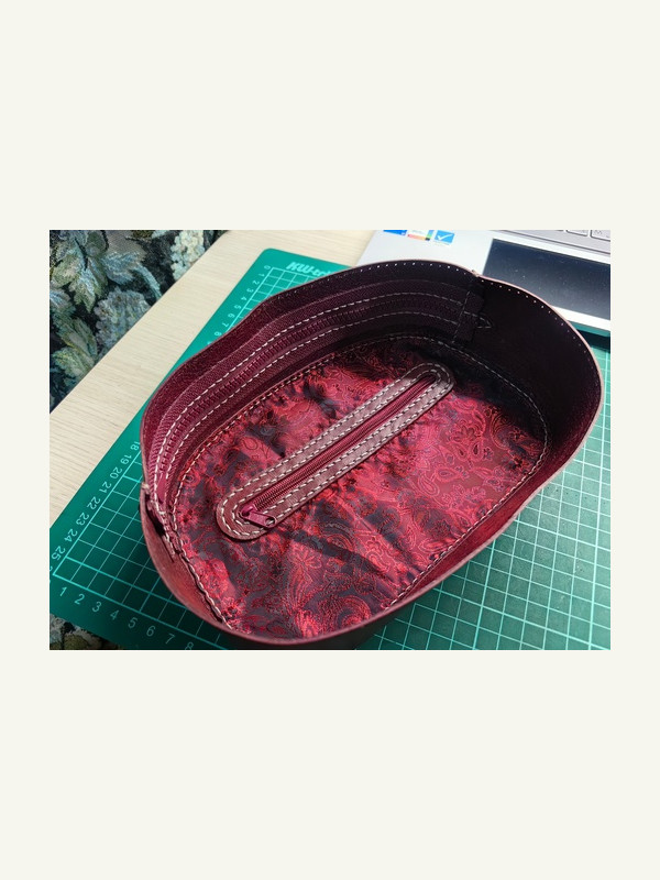Собрал тестовый образец, все сошлось идеально. Внутри сделал подклад с карманаом, тоже получилось вполне прилично. Только не стал закрывать дно и молнии, основной целью было понять, на сколько верен ход моих мыслей.