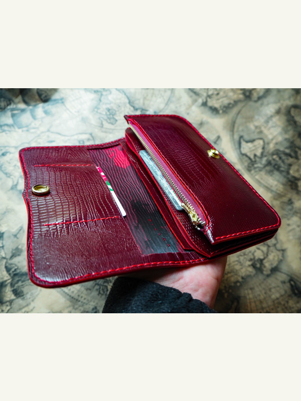 Два отдела под купюры и разнообразные полезные бумажечки. Большой отдел под мелочь и четыре вместительных отдела под карточки и визитки.