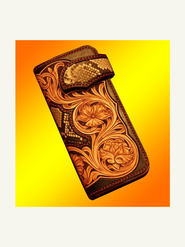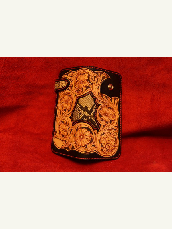 Бесплатная выкройка большого байкерского кошелька с узором из нескольких слоев кожи.